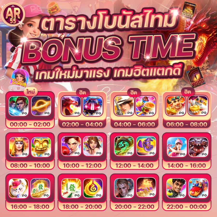 การเลือกช่วงเวลาเล่นก็สำคัญ จากสถิติพบว่าช่วงกลางดึกถึงเช้ามืดมักมีผู้เล่นน้อย ทำให้โอกาสชนะแจ็คพอตสูงขึ้น และอย่าลืมใช้โบนัสและโปรโมชั่นต่าง ๆ ที่ AR55 มอบให้ เพราะนี่คือการเพิ่มทุนและโอกาสชนะแบบฟรี ๆ
