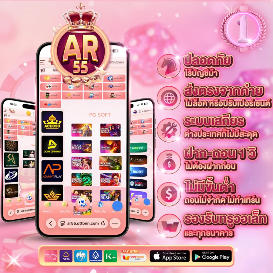 เว็บไซต์ AR55 ศูนย์รวมเกมพนันออนไลน์ครบวงจร ที่ได้รับการพัฒนาระบบให้ทันสมัยและปลอดภัย พร้อมให้บริการตลอด 24 ชั่วโมง ด้วยทีมงานมืออาชีพที่พร้อมดูแลสมาชิกทุกท่าน รองรับการเล่นผ่านทุกอุปกรณ์ ทั้งคอมพิวเตอร์และมือถือ มาพร้อมระบบฝาก-ถอนอัตโนมัติที่รวดเร็วทันใจ